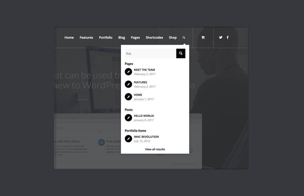 Helping your visitors find what they are looking for as fast as possible is an important task. WIth the help of our built in Ajax-Search the sie is searched as the user types and the theme delivers beautiful small previews…